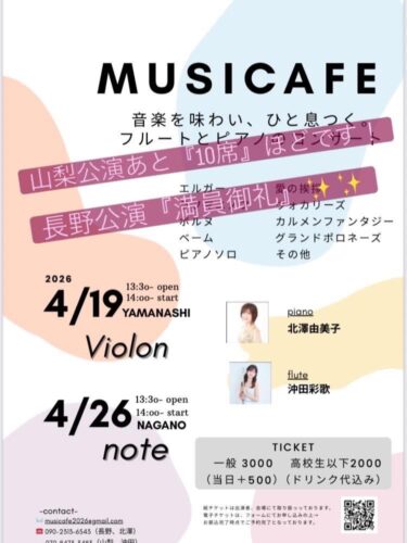 【満員御礼】フルート&ピアノコンサート長野公演